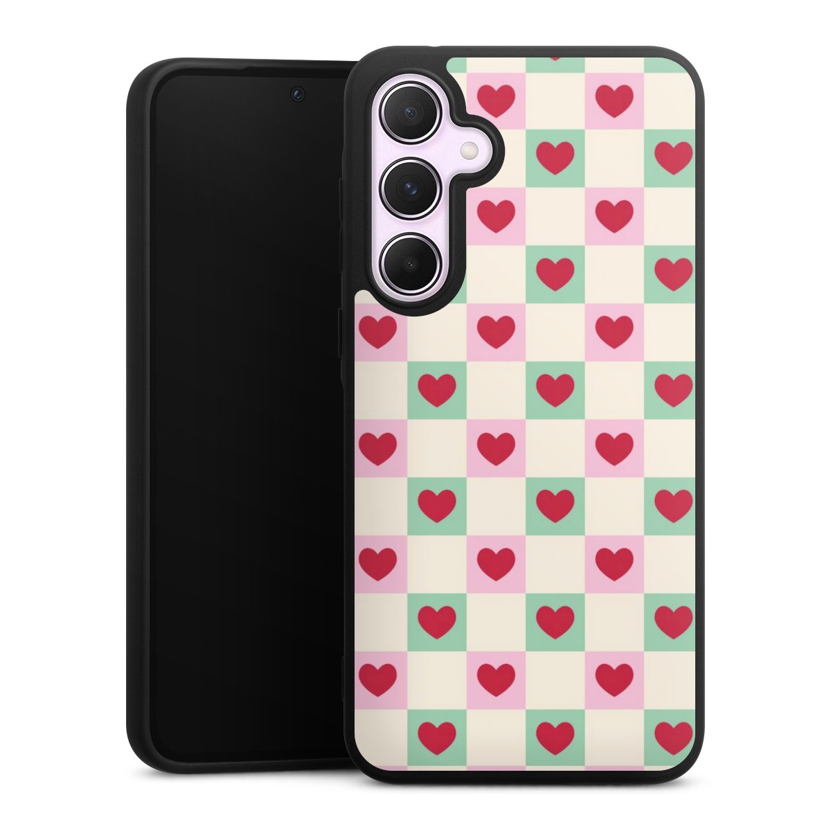 Valentine Checked Hearts Pattern Pink Green