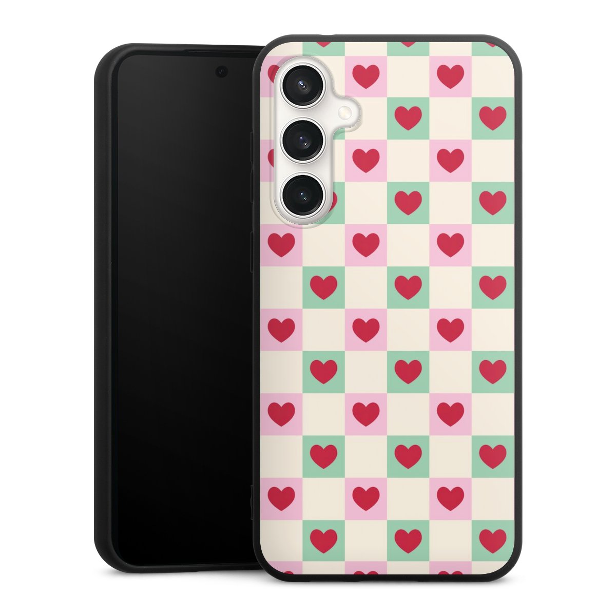 Valentine Checked Hearts Pattern Pink Green
