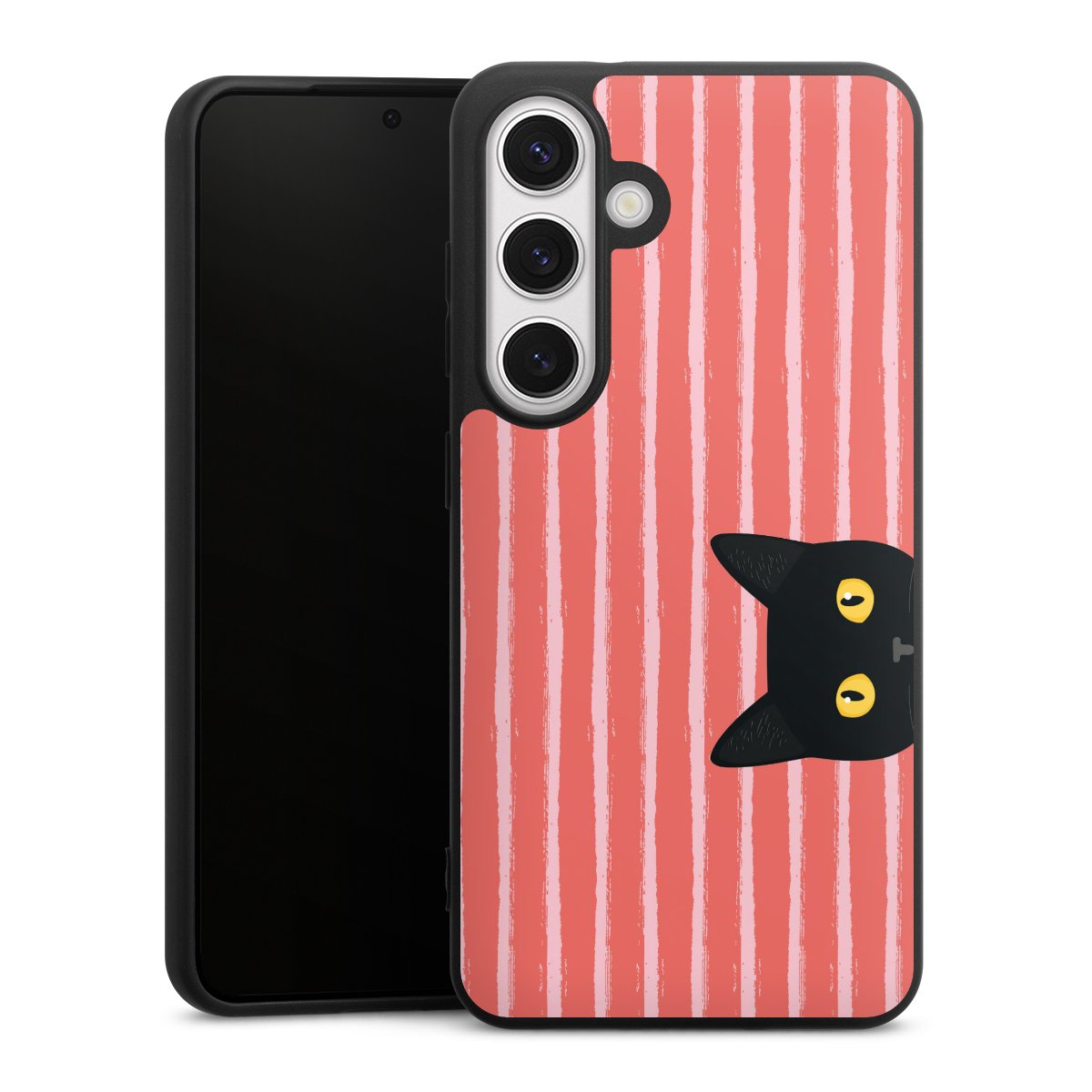 Black Cat on Orange Stripes