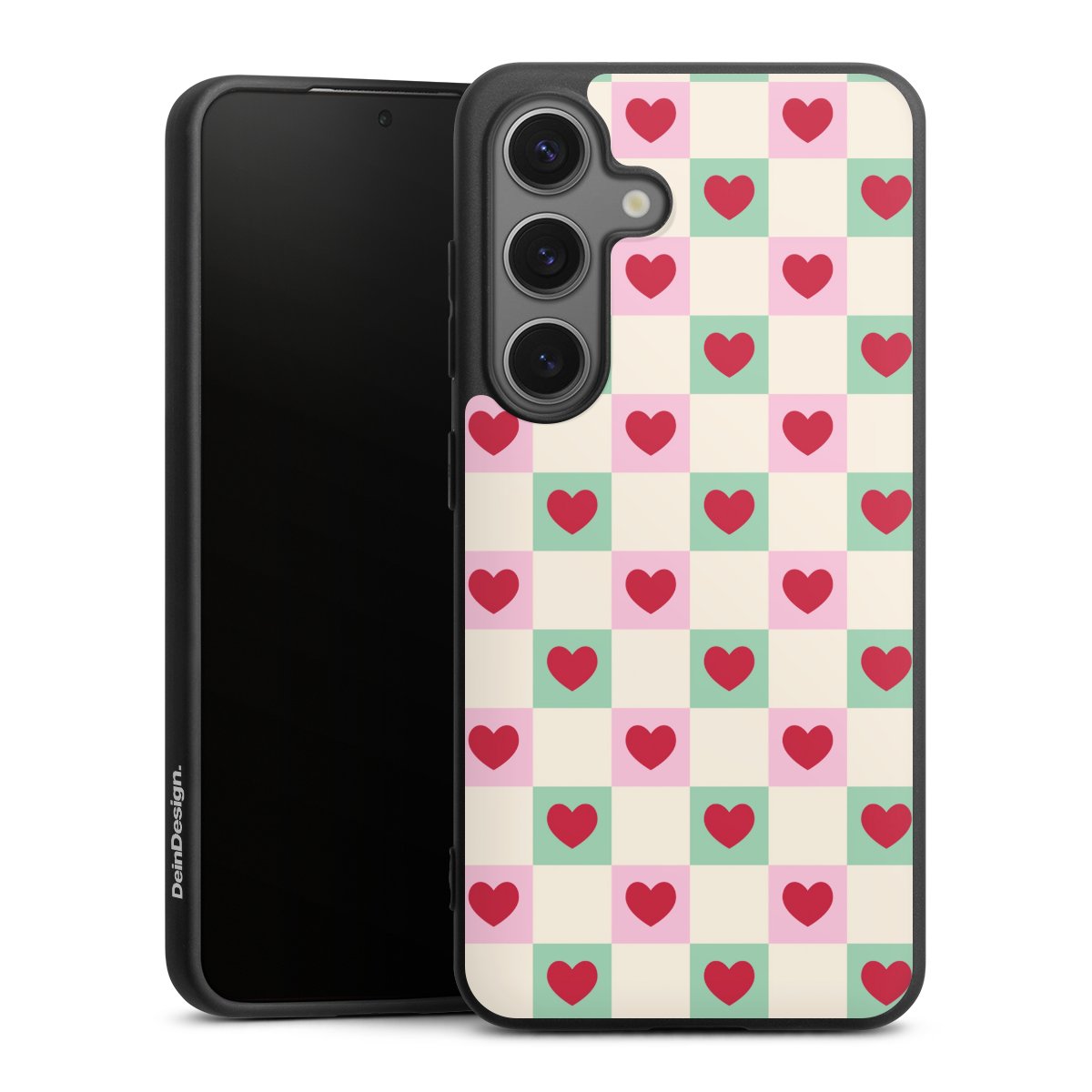 Valentine Checked Hearts Pattern Pink Green