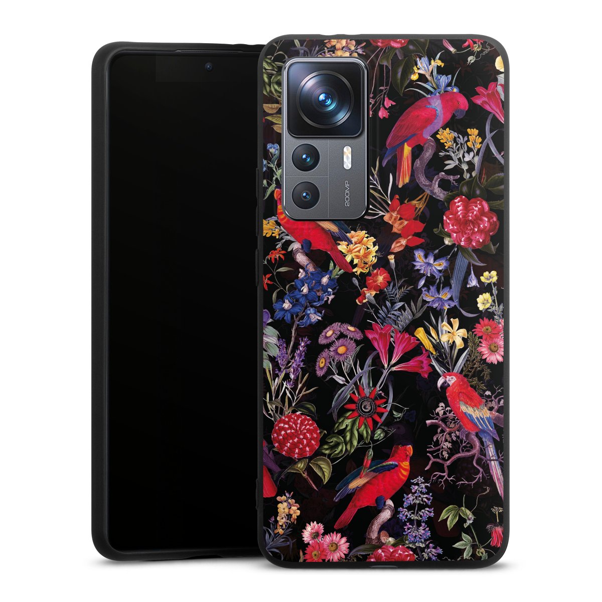 Dark Flowers and Parrots