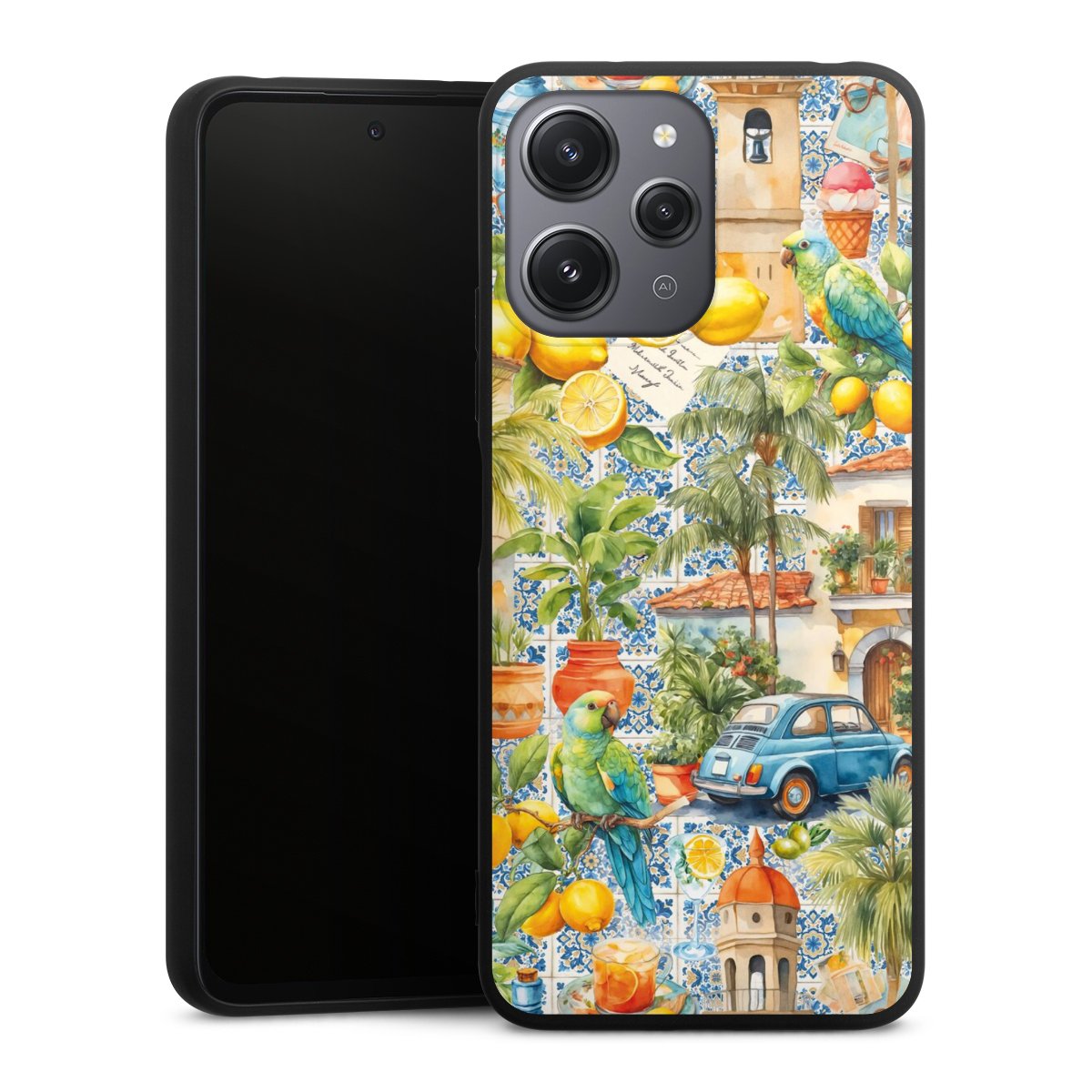 For the Silicone Premium Case Line we use the solid direct printing process. The print area covers the back, the edge remains unprinted. The mobile phone case can be ordered unprinted, fully printed, or partially printed. For your design, either choose one of our exclusive shop motifs or get creative and create your own design, for example with photos and overlays.