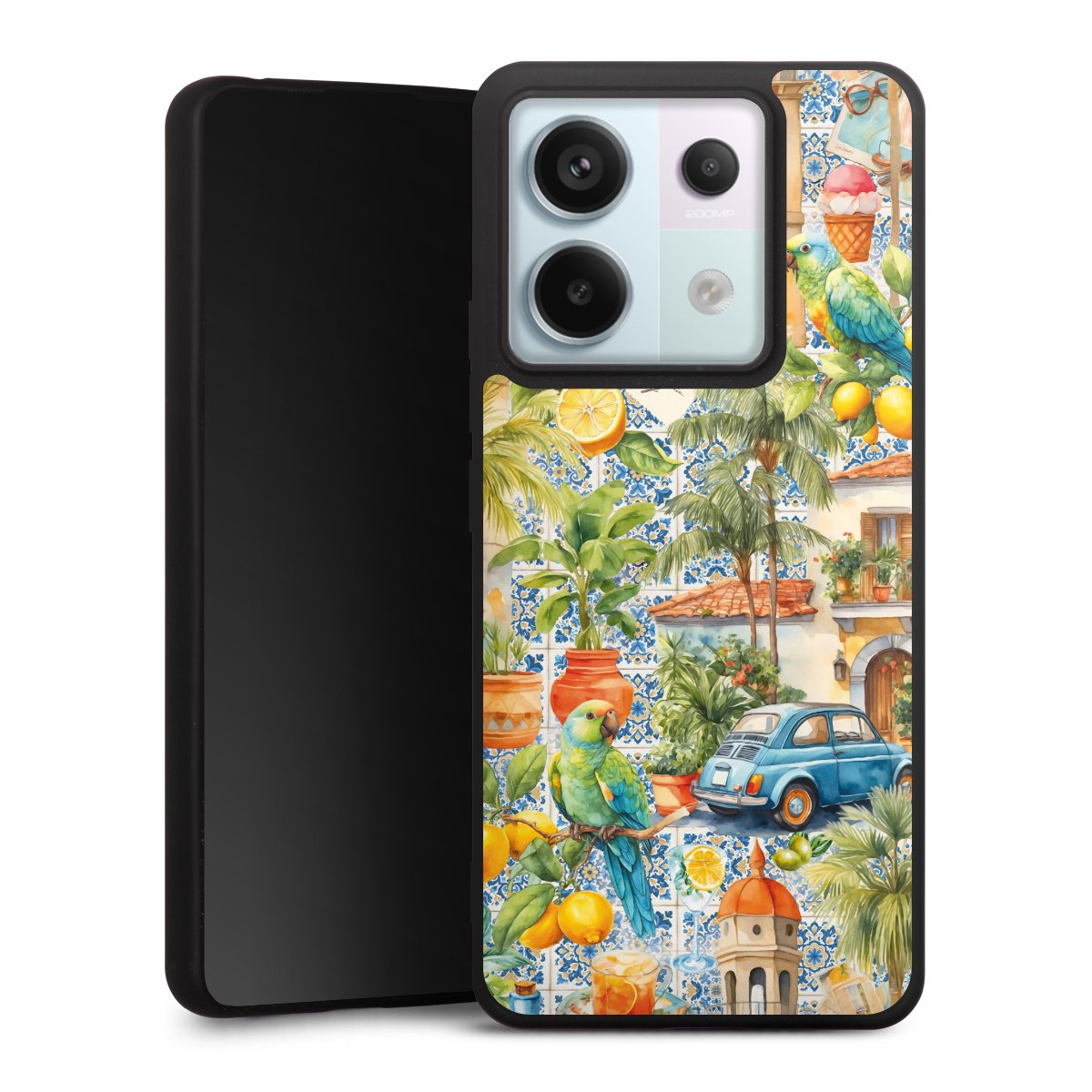 For the Silicone Premium Case Line we use the solid direct printing process. The print area covers the back, the edge remains unprinted. The mobile phone case can be ordered unprinted, fully printed, or partially printed. For your design, either choose one of our exclusive shop motifs or get creative and create your own design, for example with photos and overlays.