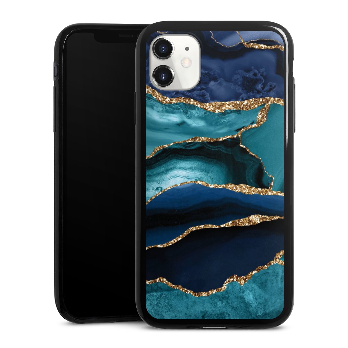 Dark and Light Blue Marble Gold Glitter Look