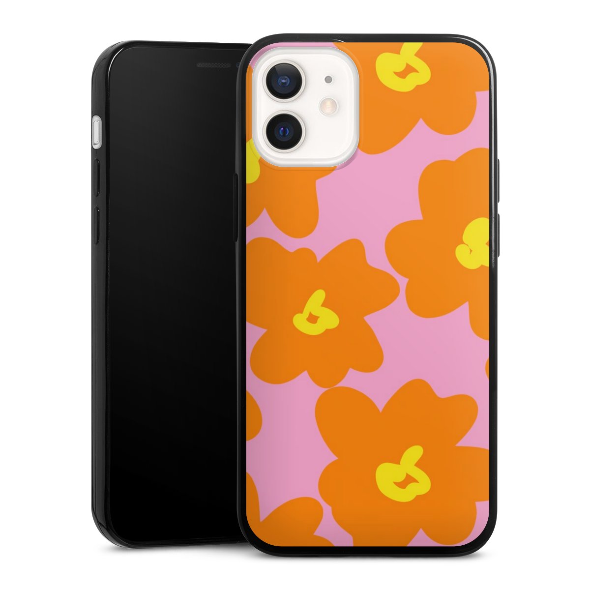 Retro floral pattern pink and orange
