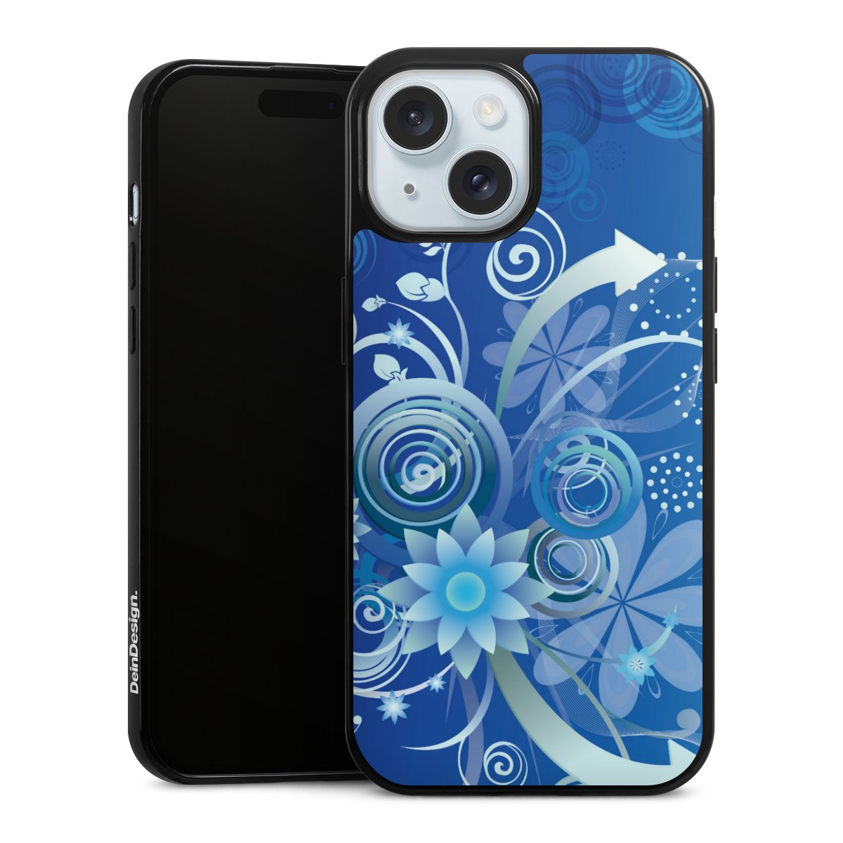 Flowers and Swirls Blue