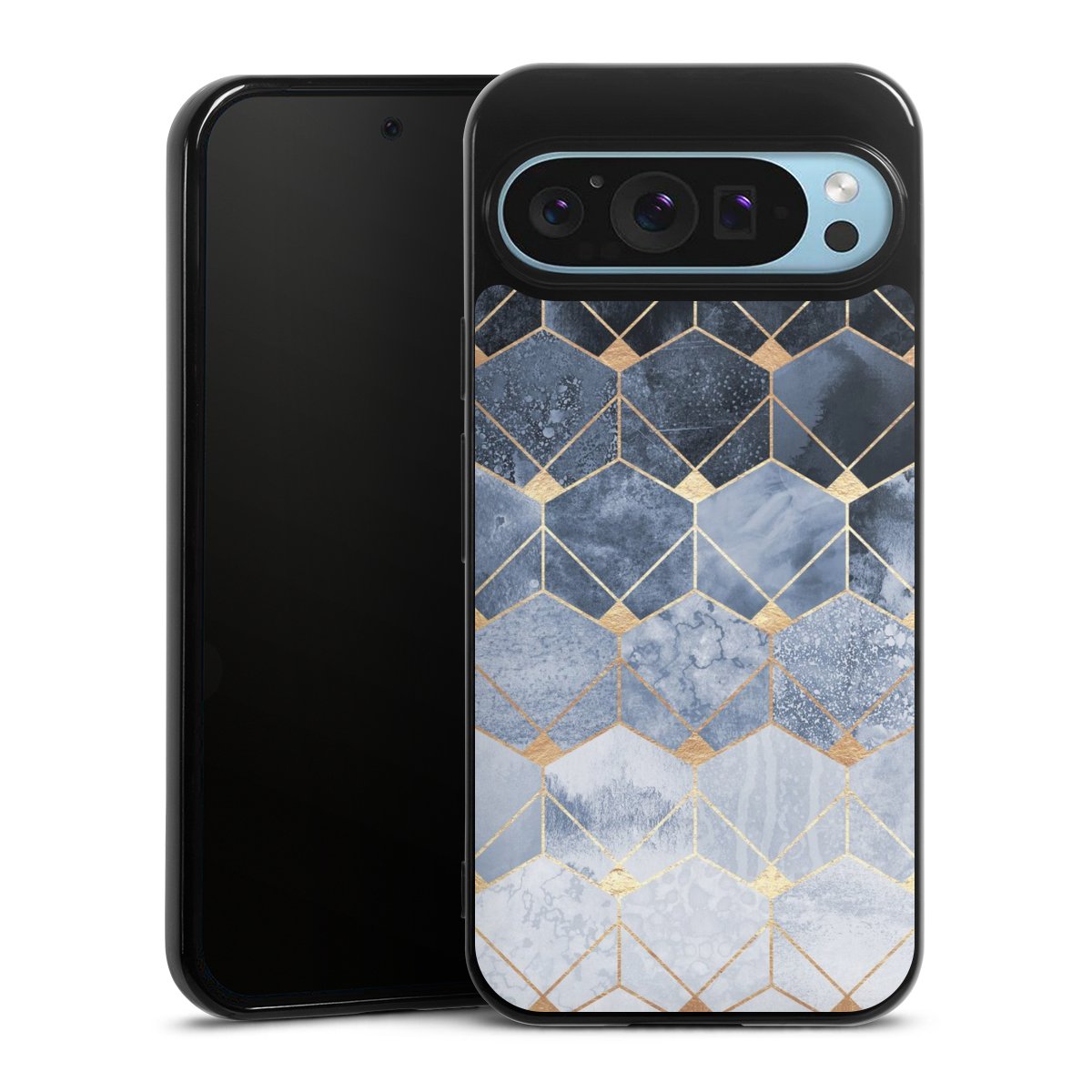 Blue Hexagons And Diamonds Gold Print