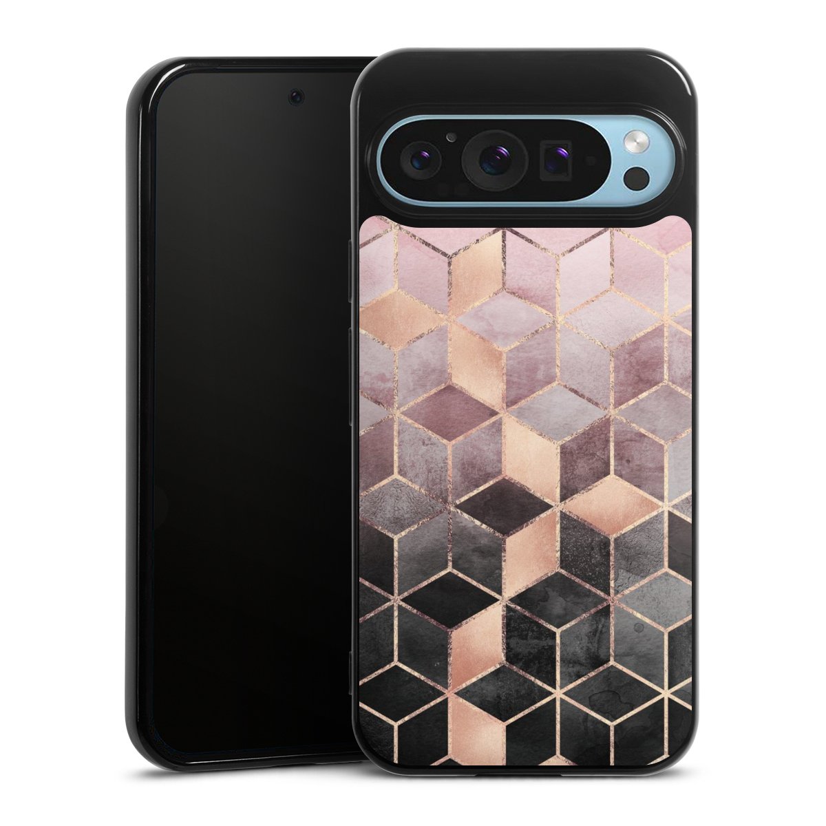 Pink Grey Gradient Cubes Print
