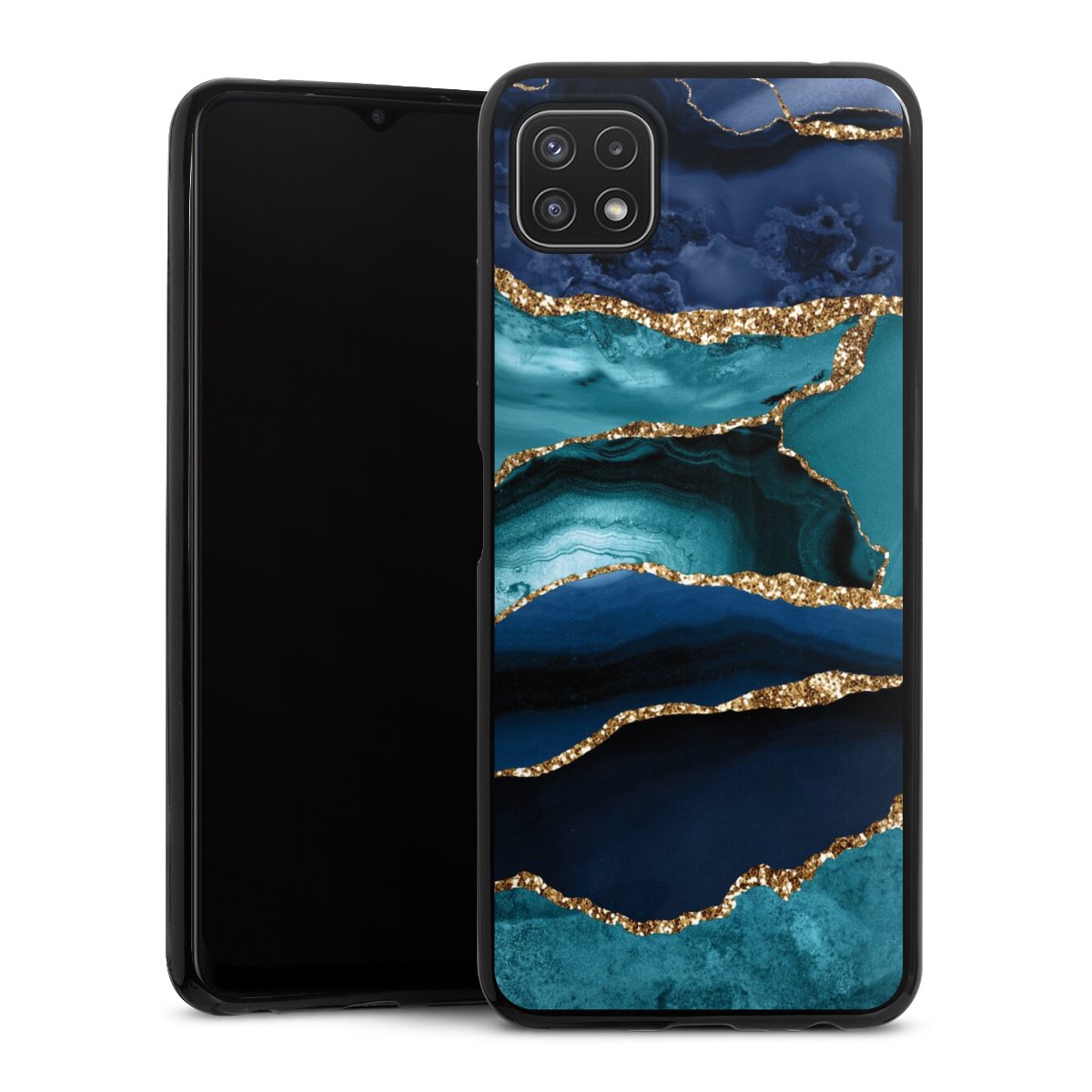 Dark and Light Blue Marble Gold Glitter Look