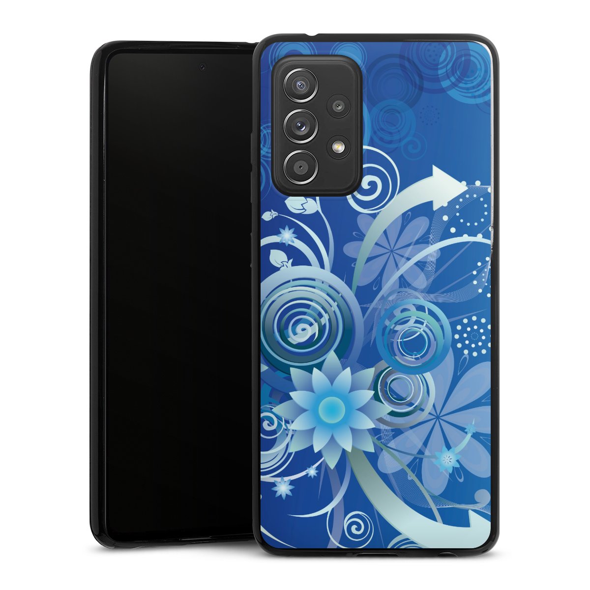 Flowers and Swirls Blue