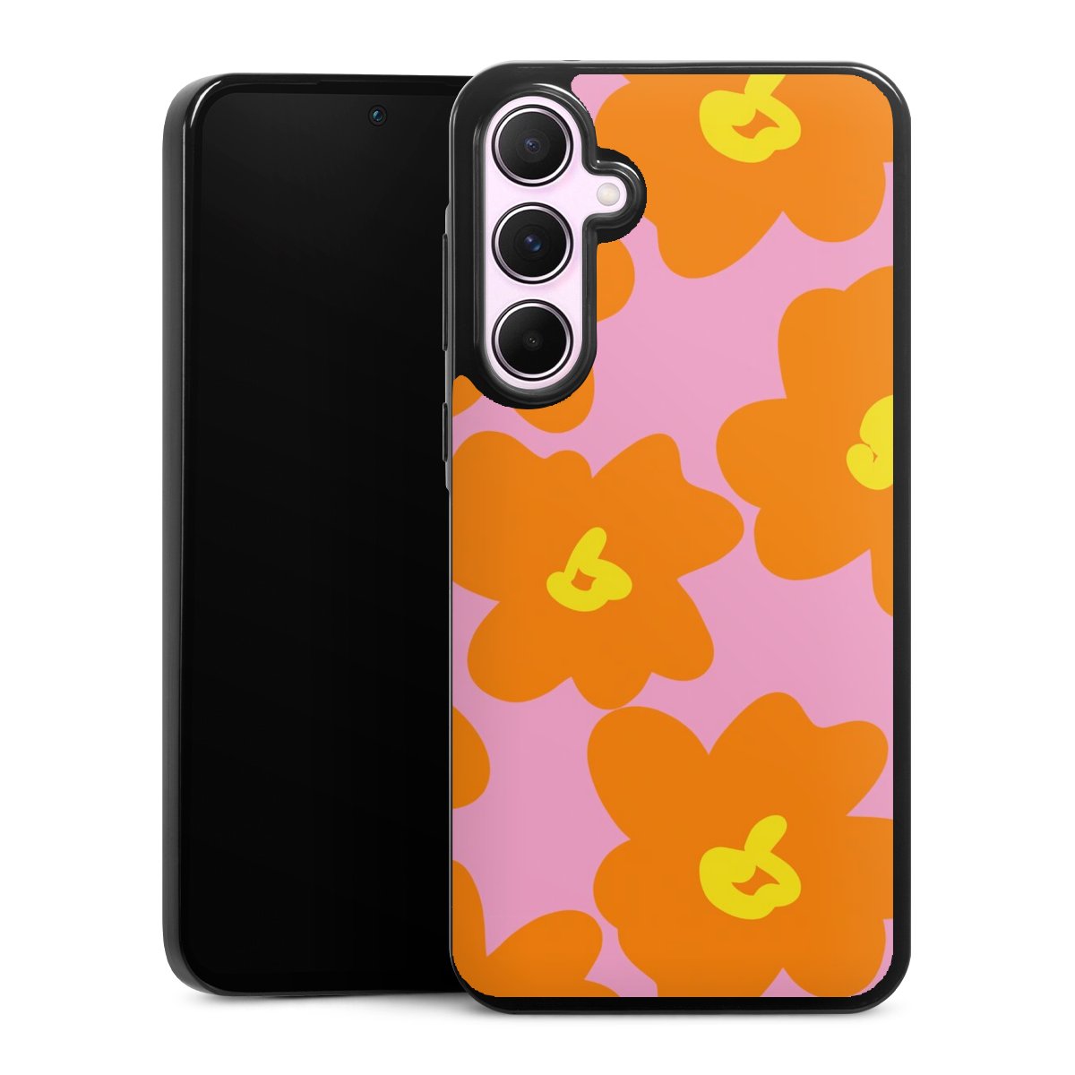 Retro floral pattern pink and orange