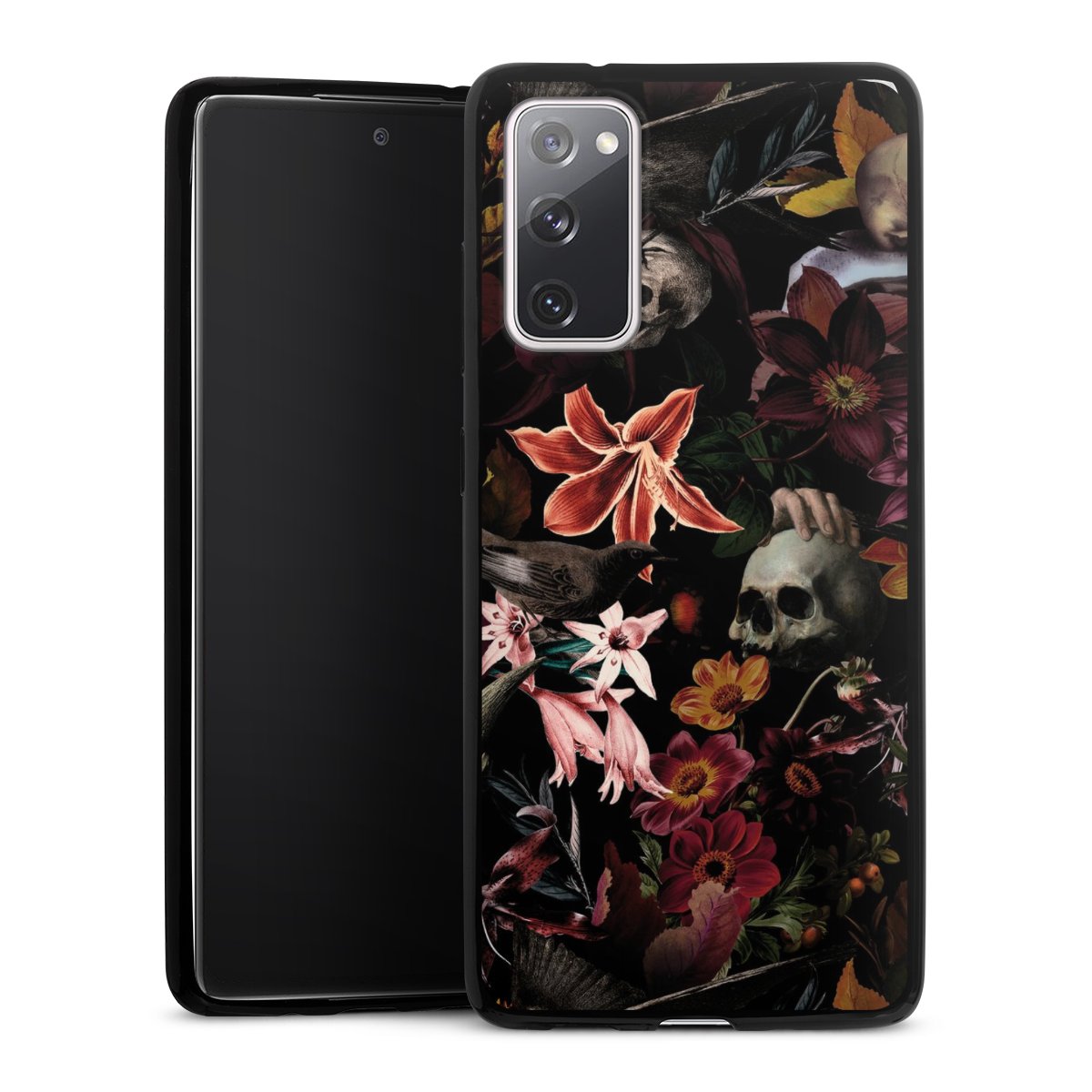 Skulls and Flowers on Dark Background