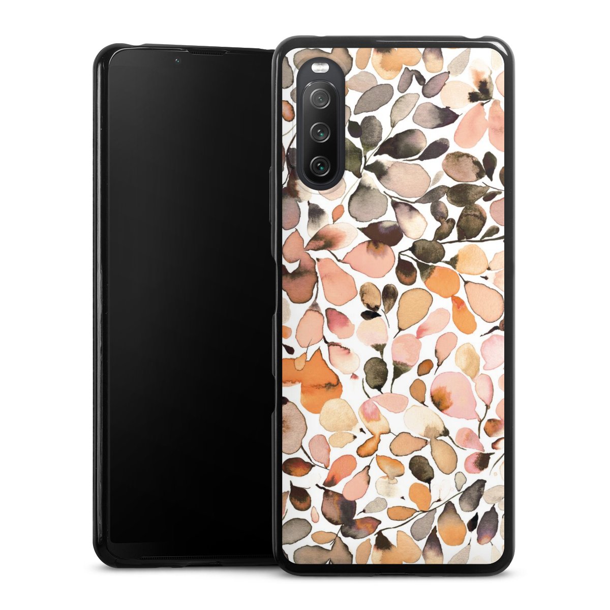 Eucalyptus Watercolor Leaves Dark Brown Autumn