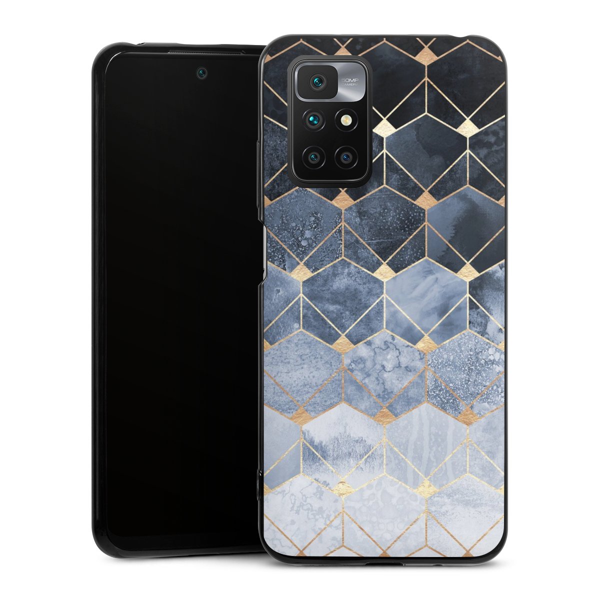 Blue Hexagons And Diamonds Gold Print