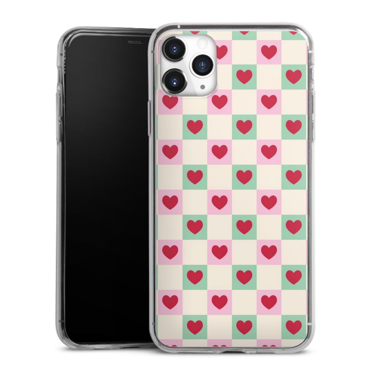 Valentine Checked Hearts Pattern Pink Green