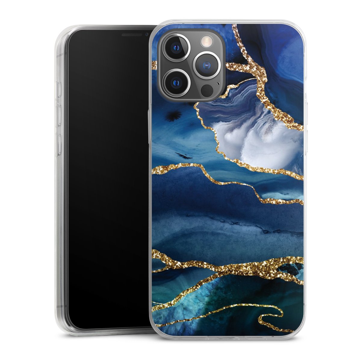 Blue Marble Gold Glitter Look