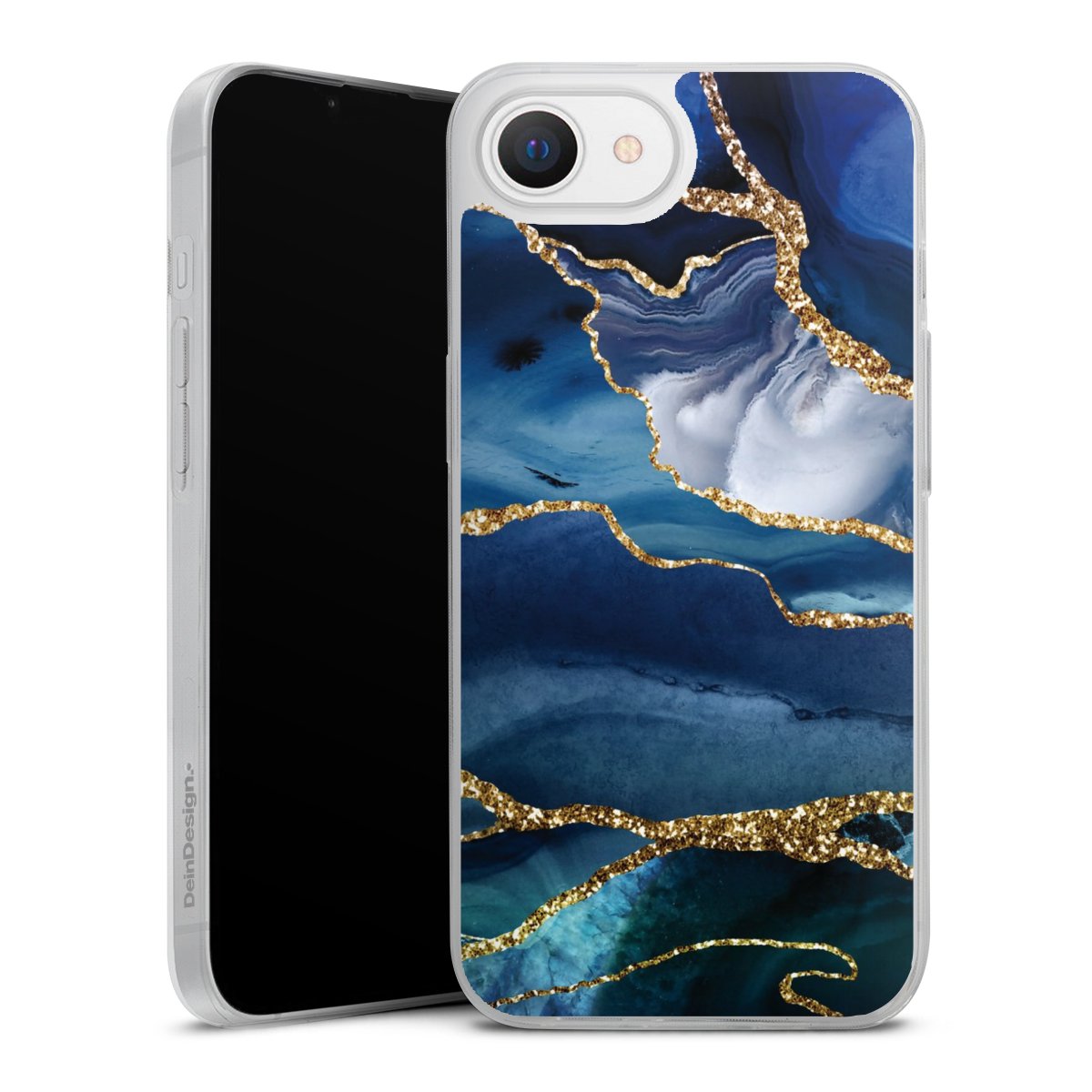Blue Marble Gold Glitter Look