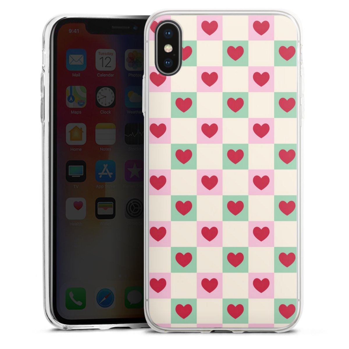 Valentine Checked Hearts Pattern Pink Green