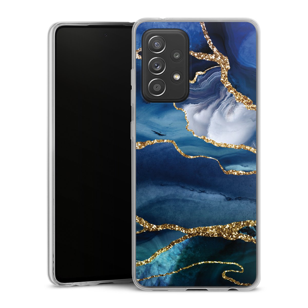 Blue Marble Gold Glitter Look
