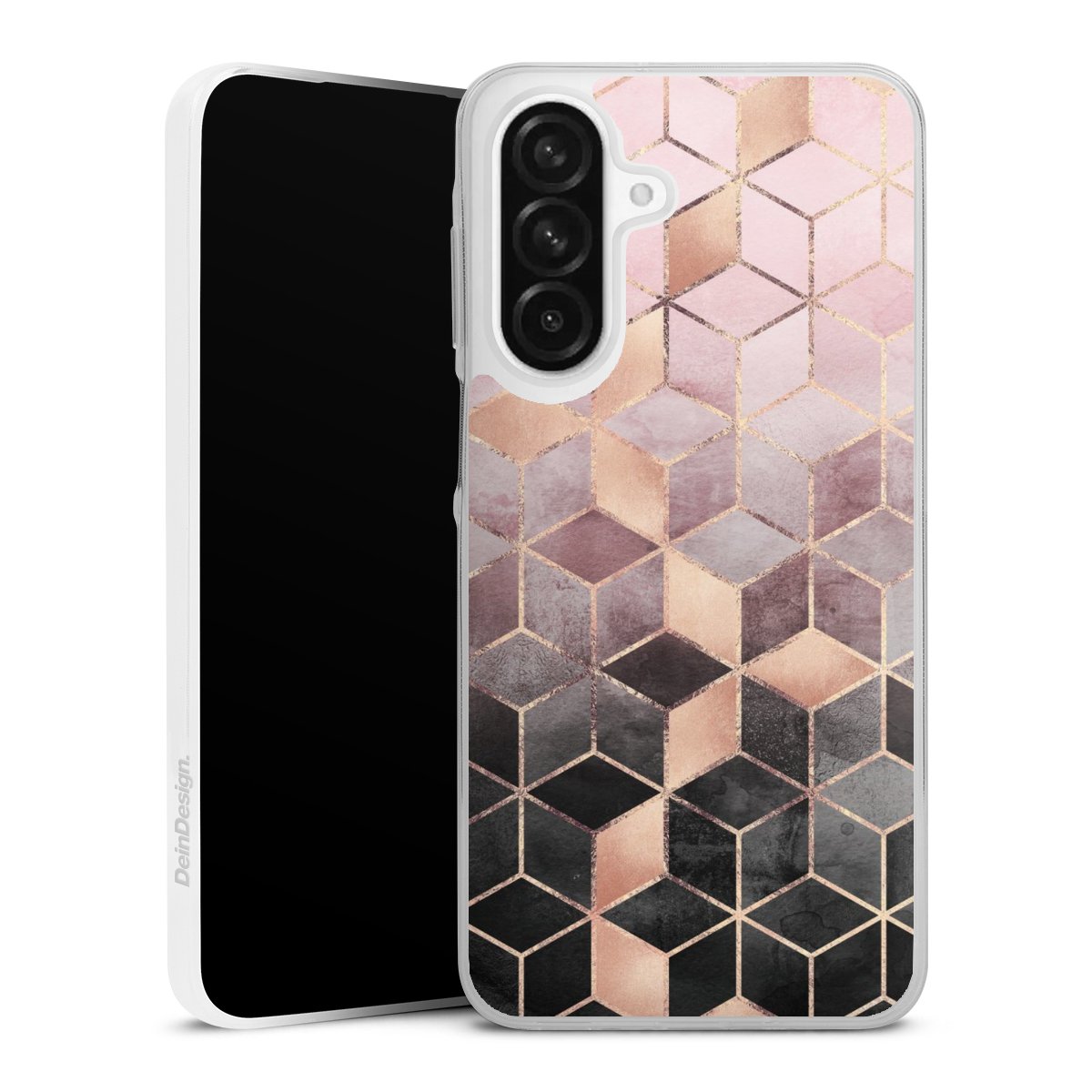Pink Grey Gradient Cubes Print