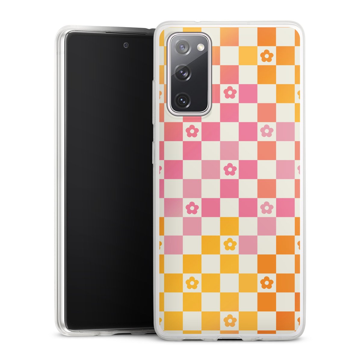 Colorful Dopamin Flowers Checked Pattern
