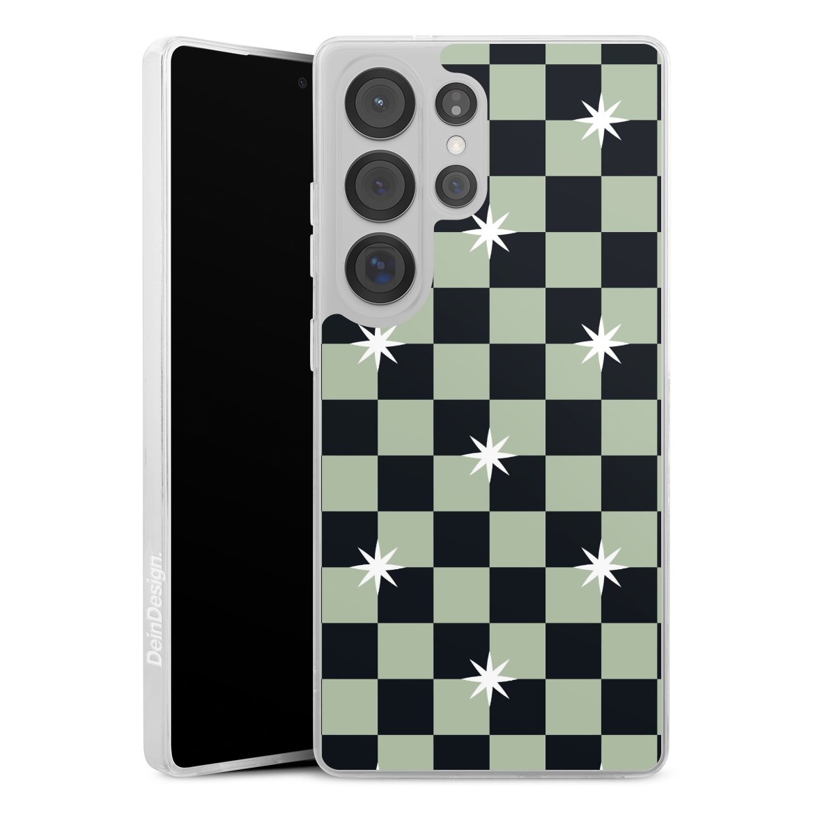 Checked Pattern Black Grey Stars