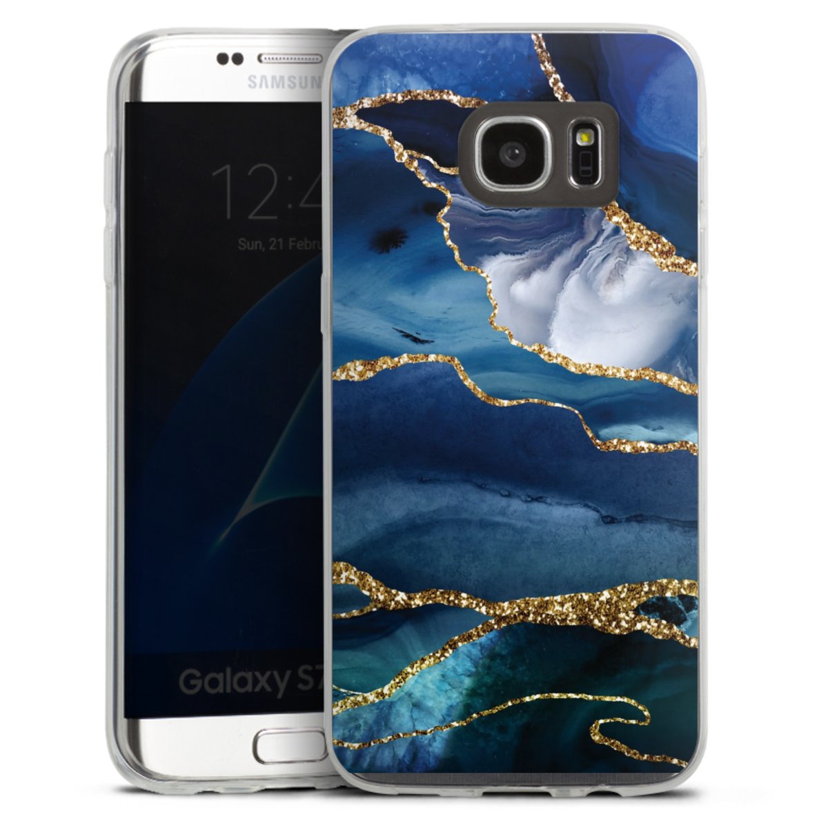 Blue Marble Gold Glitter Look