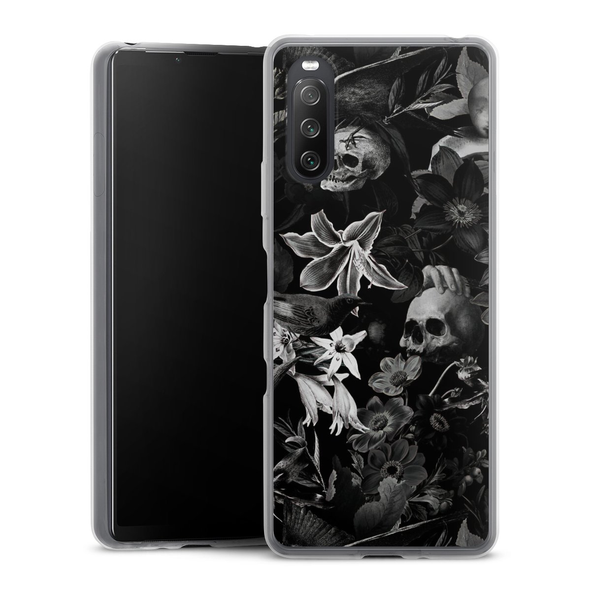 Skulls and Flowers on Black Background