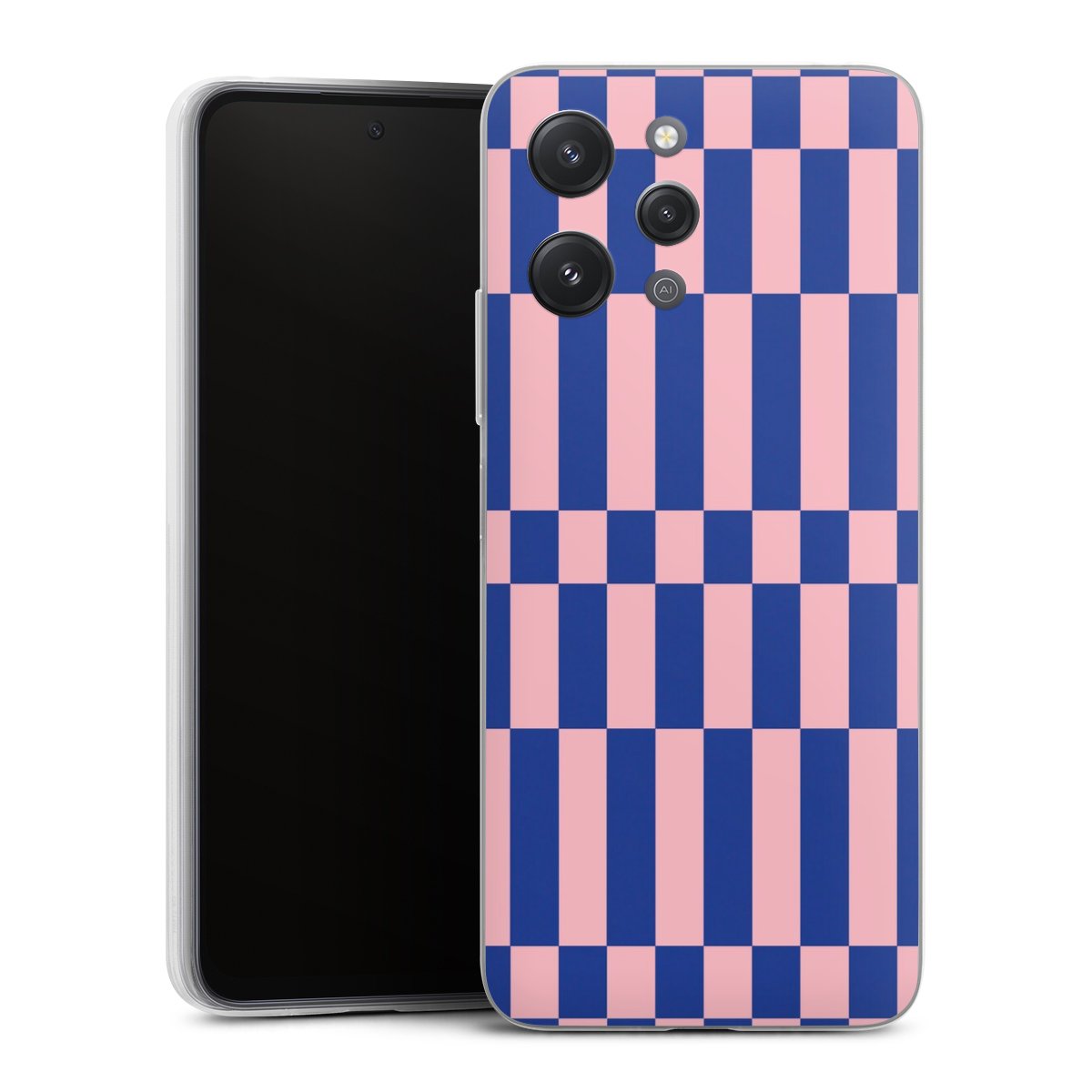 Checked Abstract Bold Electric Blue and Pink Color Block