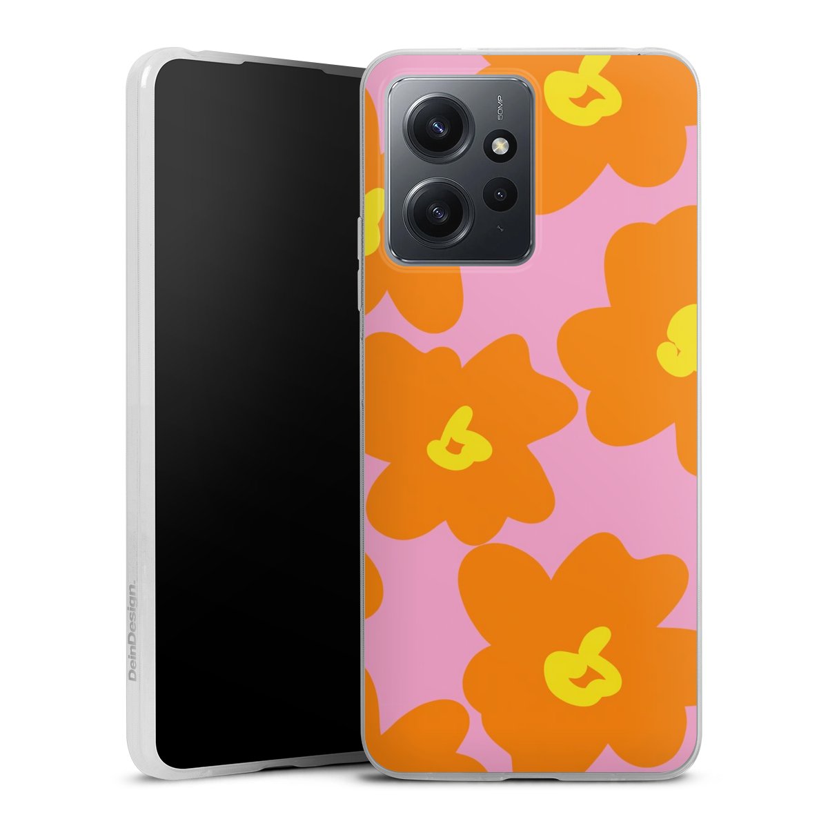 Retro floral pattern pink and orange