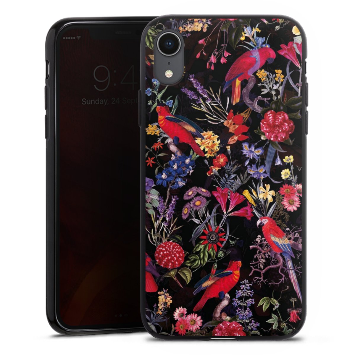 Dark Flowers and Parrots