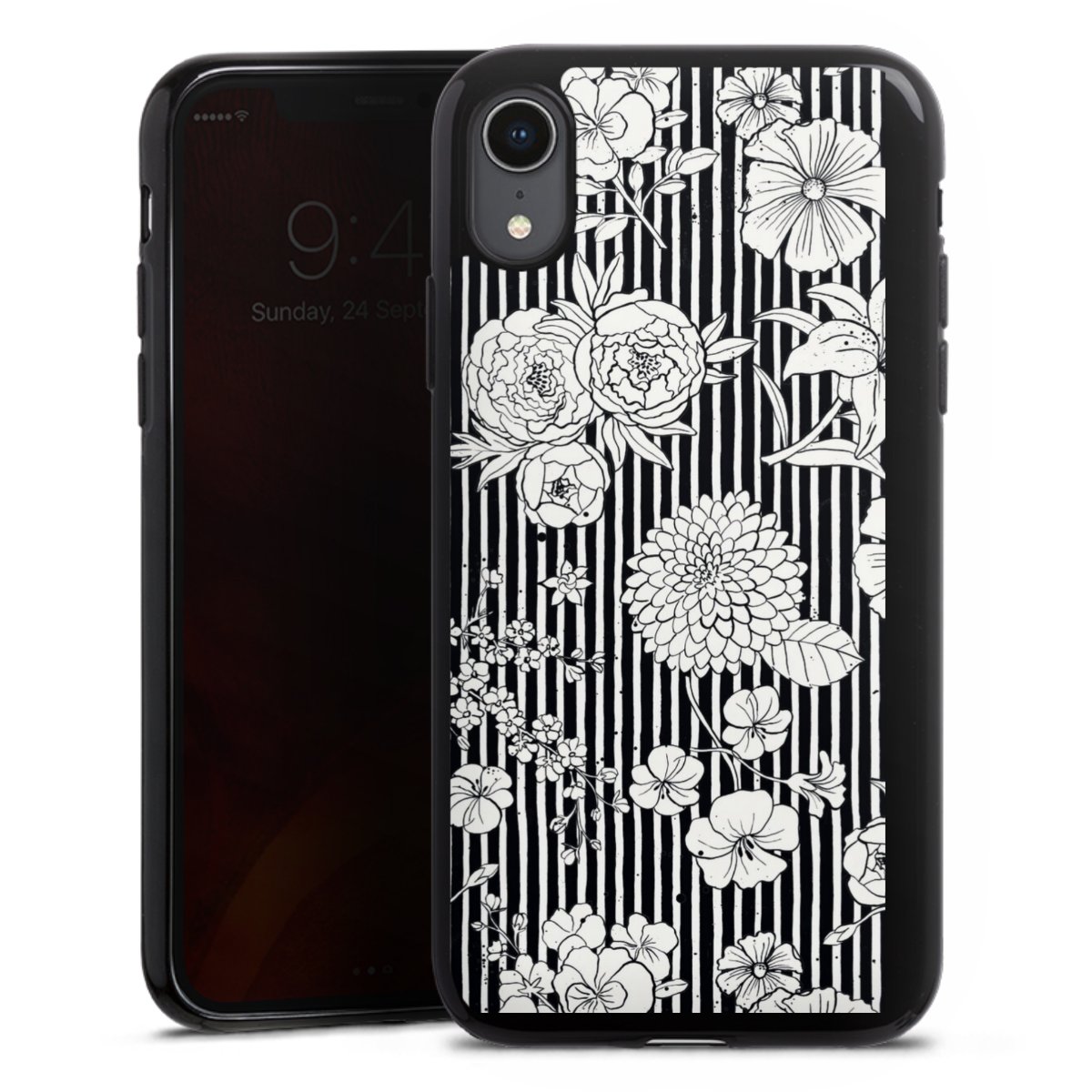 Flowers and Stripes Black and White