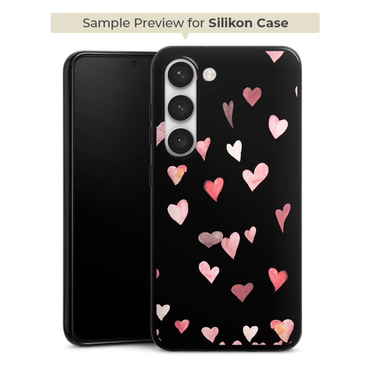 For our Silicone Case we are using our advanced direct printing technology. The backside is fully printabale, the frame is left unprinted. You can order the phone case without print, printed completely or also with a partial print. Choose one of our exklusive, pre-made shop designs or let your creativity shine and create your very own unique design with your pictures, overlays and text.