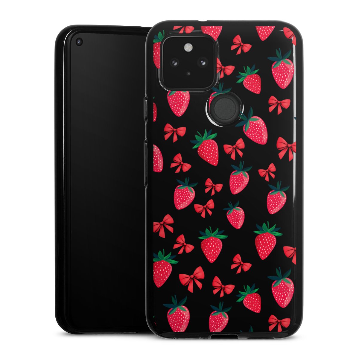 Strawberry Heart Ribbon Pattern Transparent