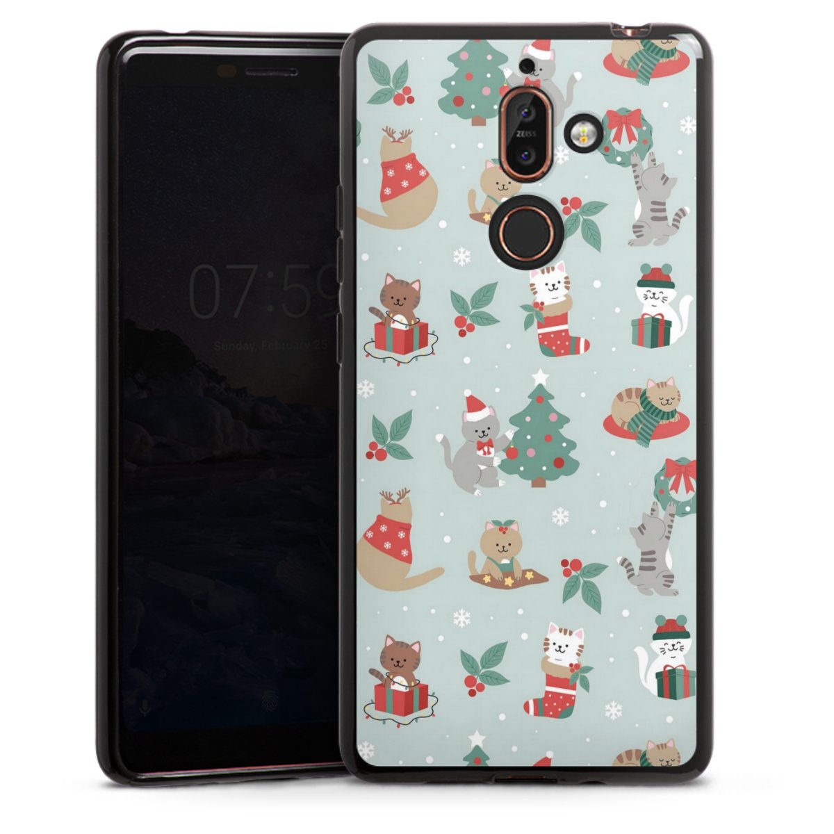 Cute Winter Wonderland Christmas Festive Cats on Teal