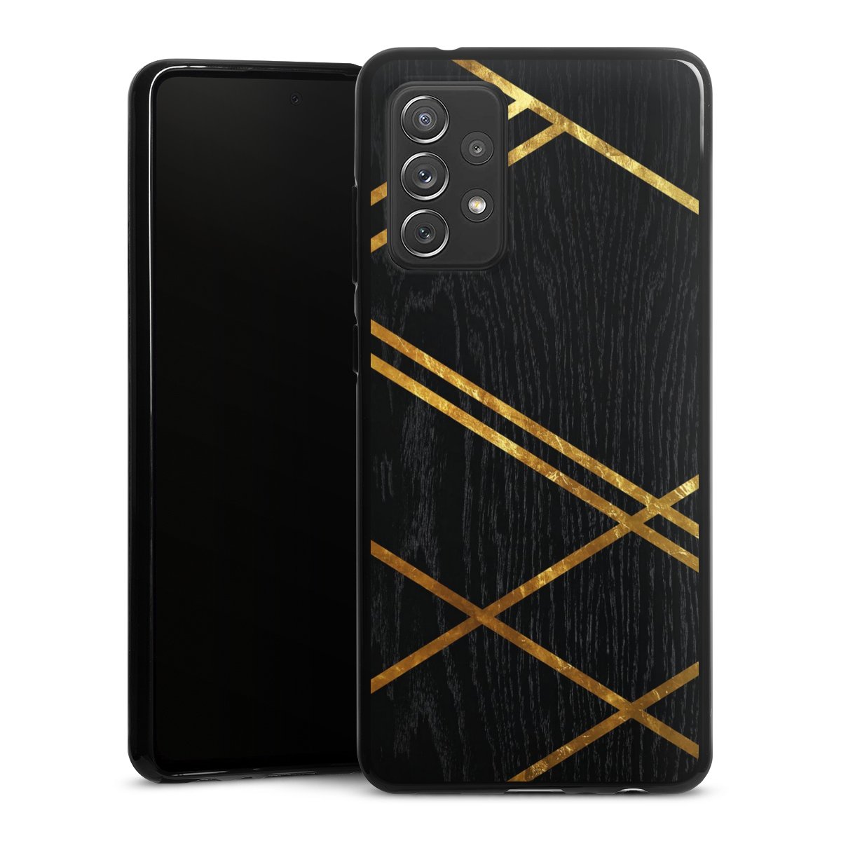 Black Geometric Pattern Golden Stripes