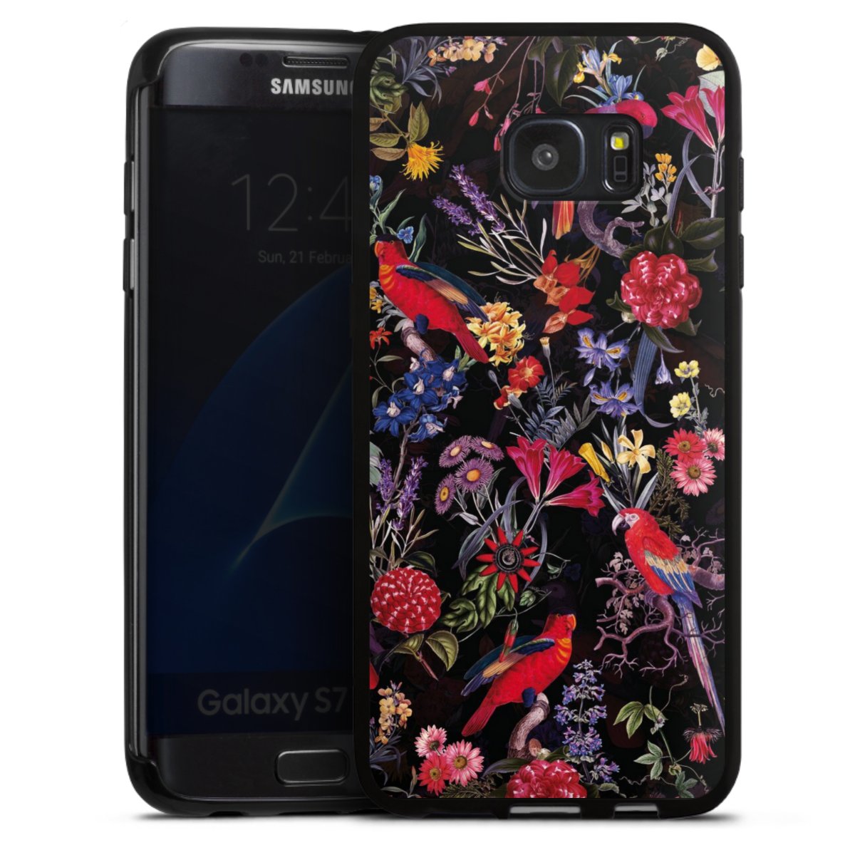 Dark Flowers and Parrots