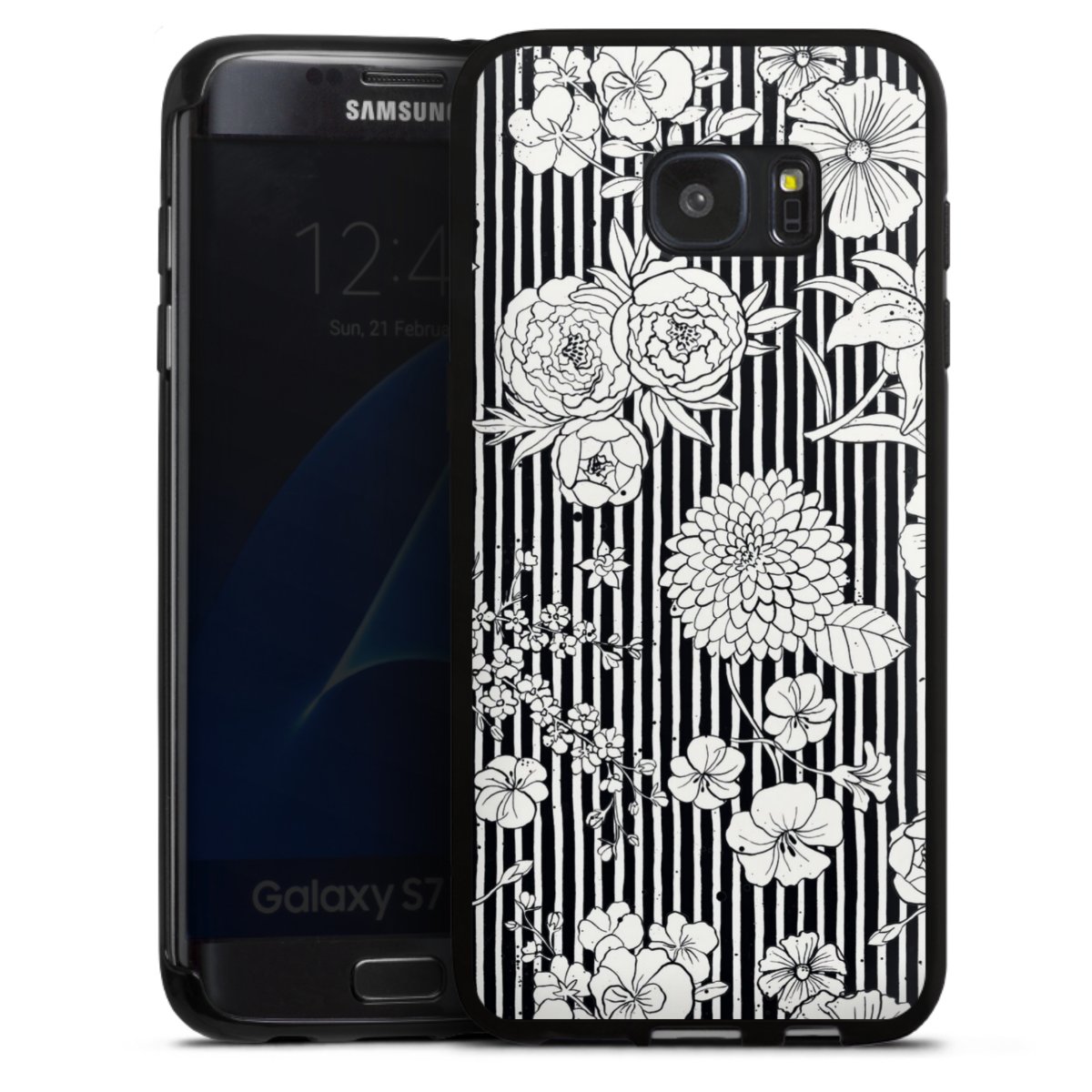 Flowers and Stripes Black and White