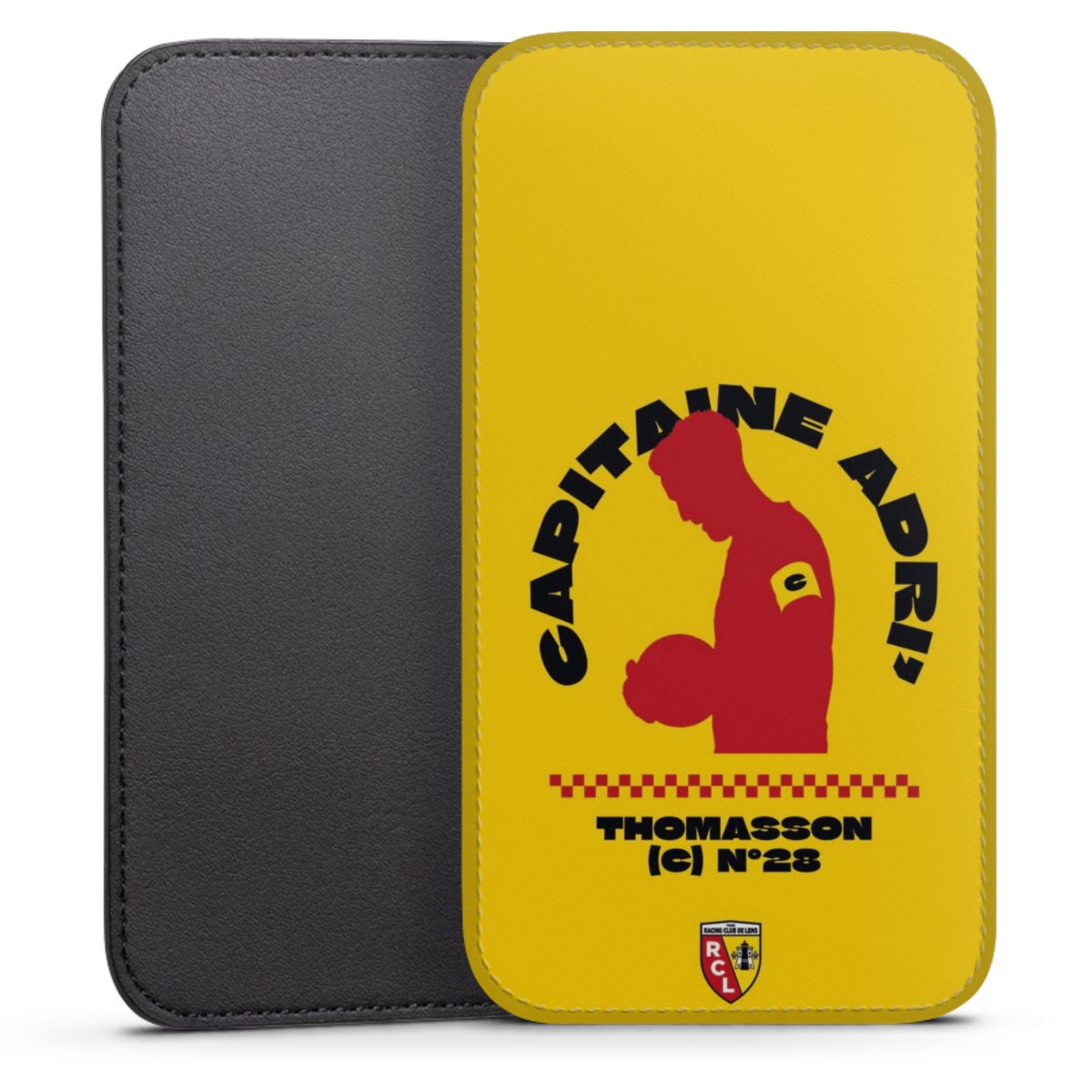 Product details This handy phone sleeve protects your device all around and is made from a highqhality vegan Skai® leather imitate in black on the backside and white on the printable frontside.