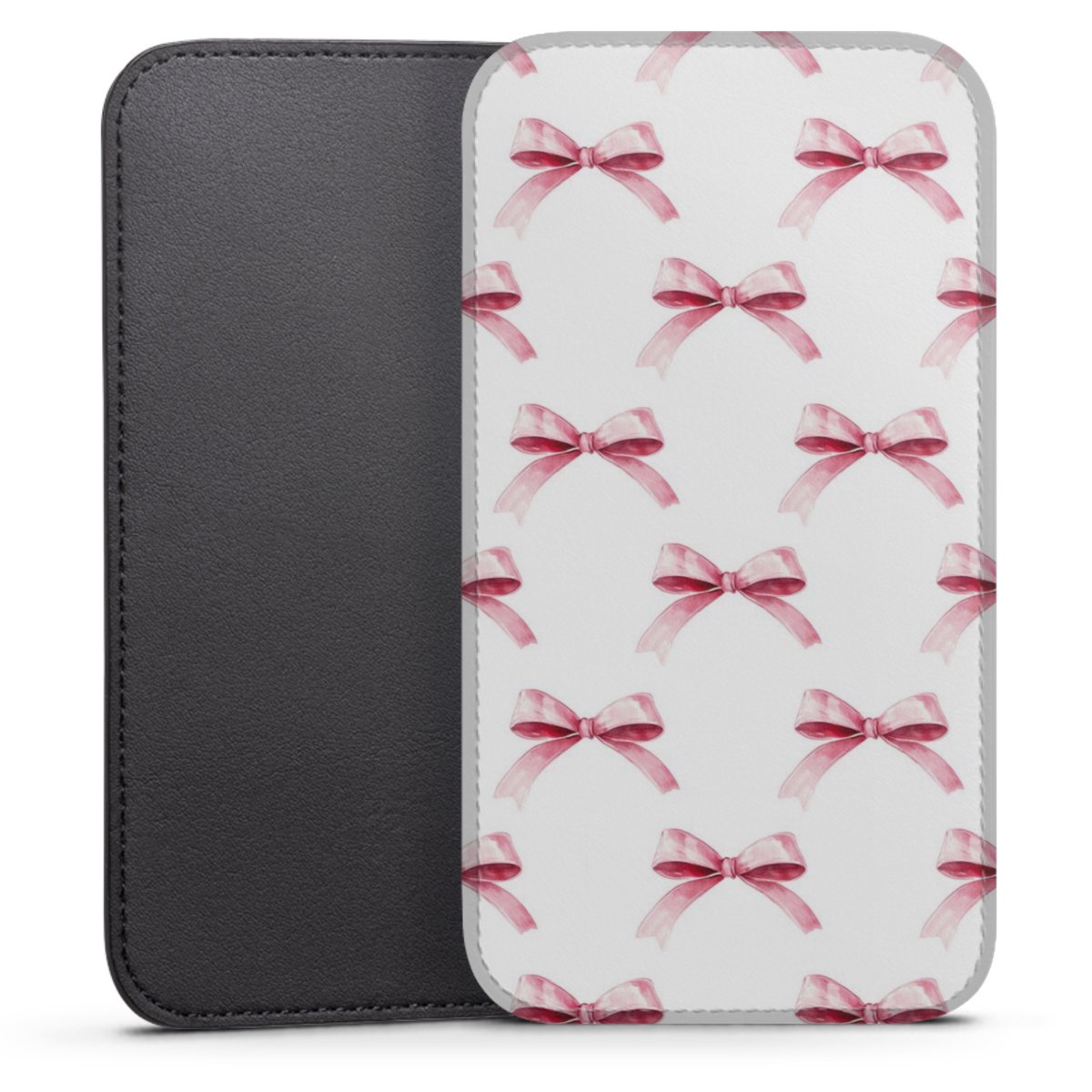 Product details This handy phone sleeve protects your device all around and is made from a highqhality vegan Skai® leather imitate in black on the backside and white on the printable frontside.