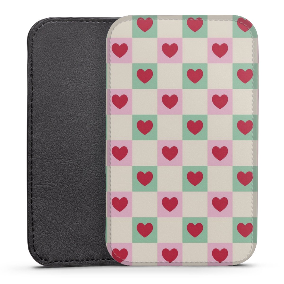 Product details This handy phone sleeve protects your device all around and is made from a highqhality vegan Skai® leather imitate in black on the backside and white on the printable frontside.