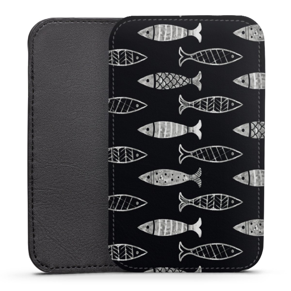 Product details This handy phone sleeve protects your device all around and is made from a highqhality vegan Skai® leather imitate in black on the backside and white on the printable frontside.