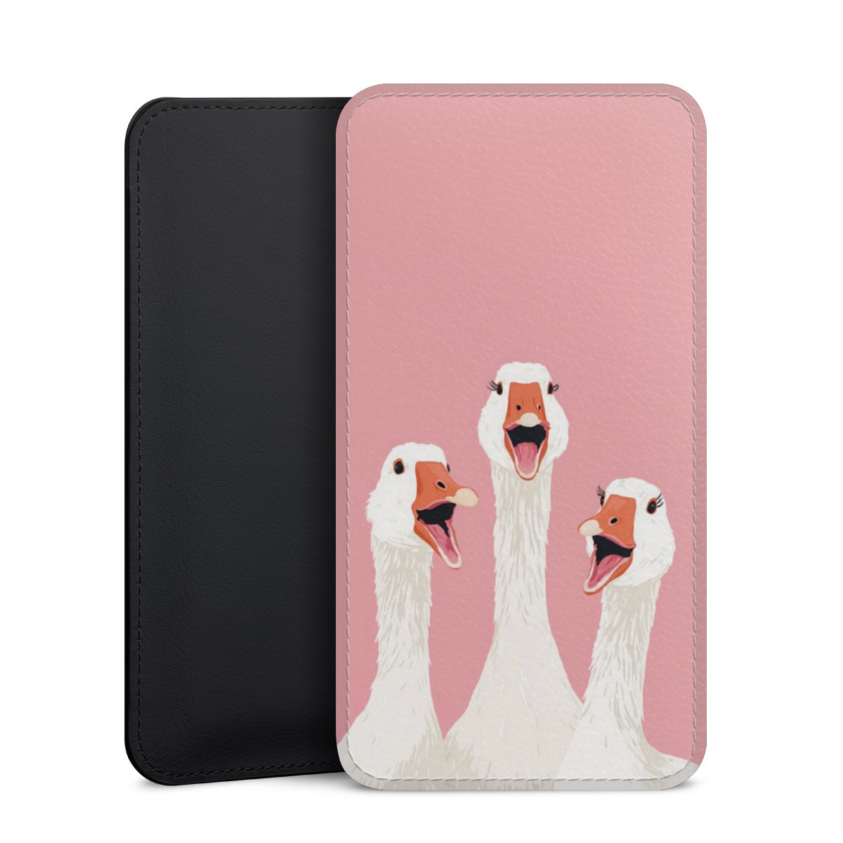 Product details This handy phone sleeve protects your device all around and is made from a highqhality vegan Skai® leather imitate in black on the backside and white on the printable frontside.