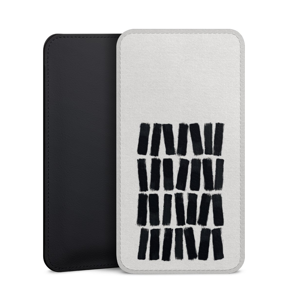 Product details This handy phone sleeve protects your device all around and is made from a highqhality vegan Skai® leather imitate in black on the backside and white on the printable frontside.