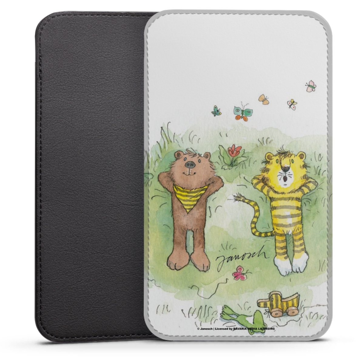 Product details This handy phone sleeve protects your device all around and is made from a highqhality vegan Skai® leather imitate in black on the backside and white on the printable frontside.