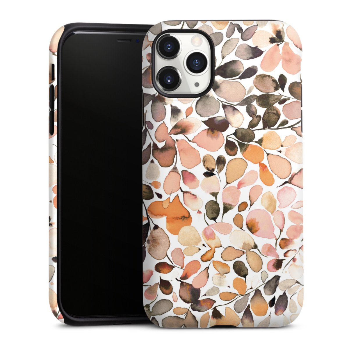 Eucalyptus Watercolor Leaves Dark Brown Autumn