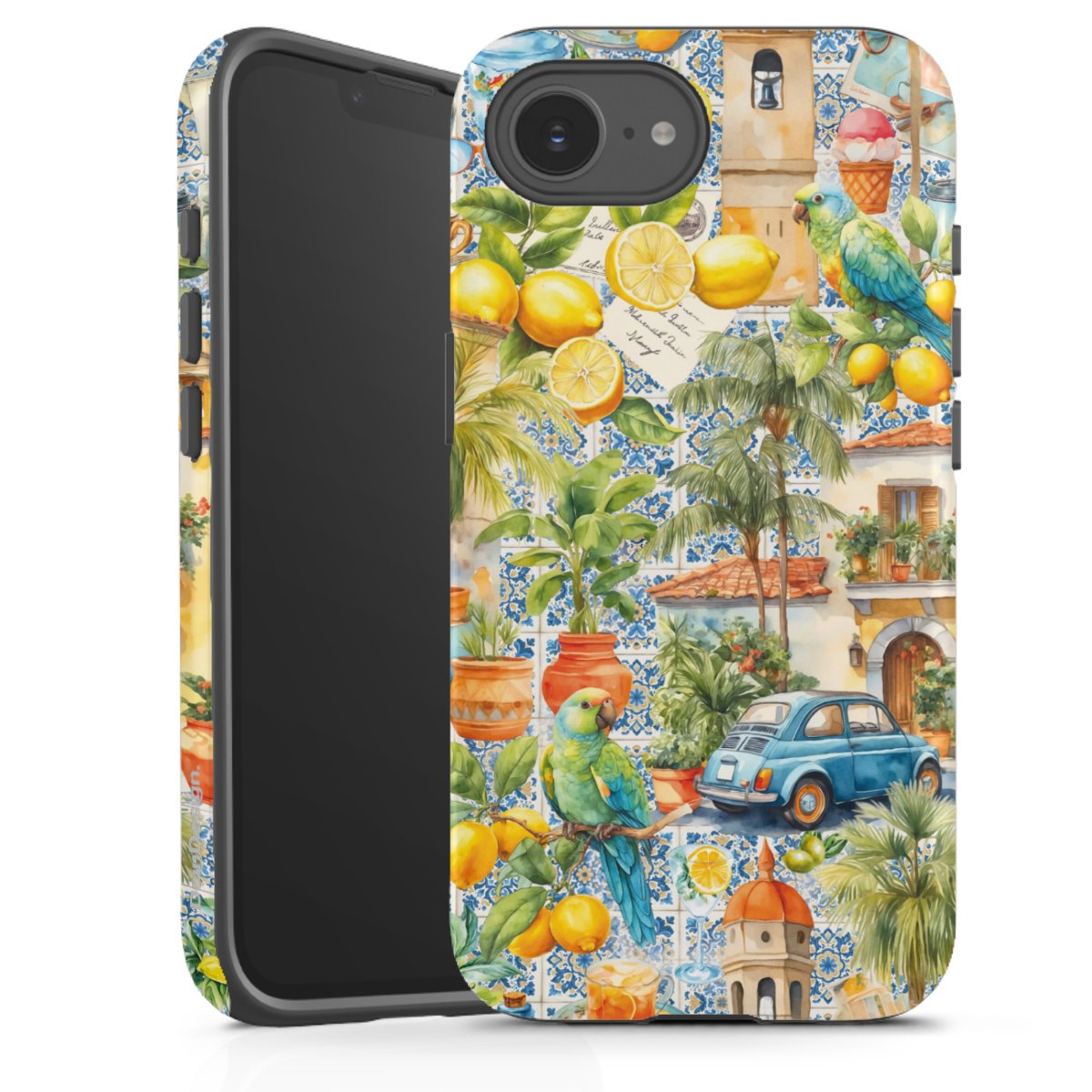 Product details Our most protective phone case combines the advantages of the Silicone and Premium Case: the flexible silicone core on the inside offers an extra shockabsorbing layer, protecting reliably against damages from dropping your phone. The longlasting, polycarbonate hard shell ensures additional stability and a brilliant print result. The surface of the 2,6 mm strong case feels smooth offering a comfortable grip. The case is available with a matt and glossy finish.