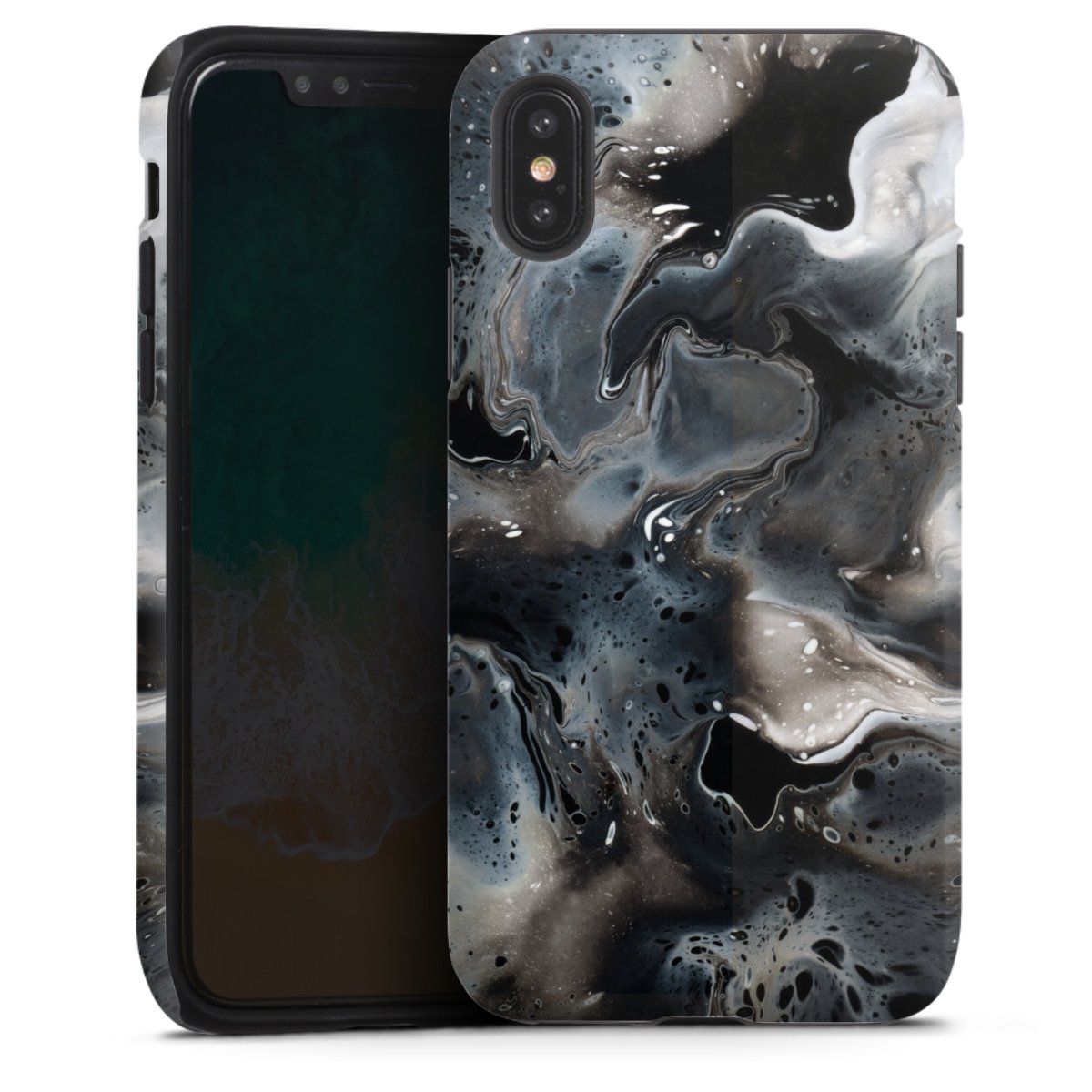 Product details Our most protective phone case combines the advantages of the Silicone and Premium Case: the flexible silicone core on the inside offers an extra shockabsorbing layer, protecting reliably against damages from dropping your phone. The longlasting, polycarbonate hard shell ensures additional stability and a brilliant print result. The surface of the 2,6 mm strong case feels smooth offering a comfortable grip. The case is available with a matt and glossy finish.