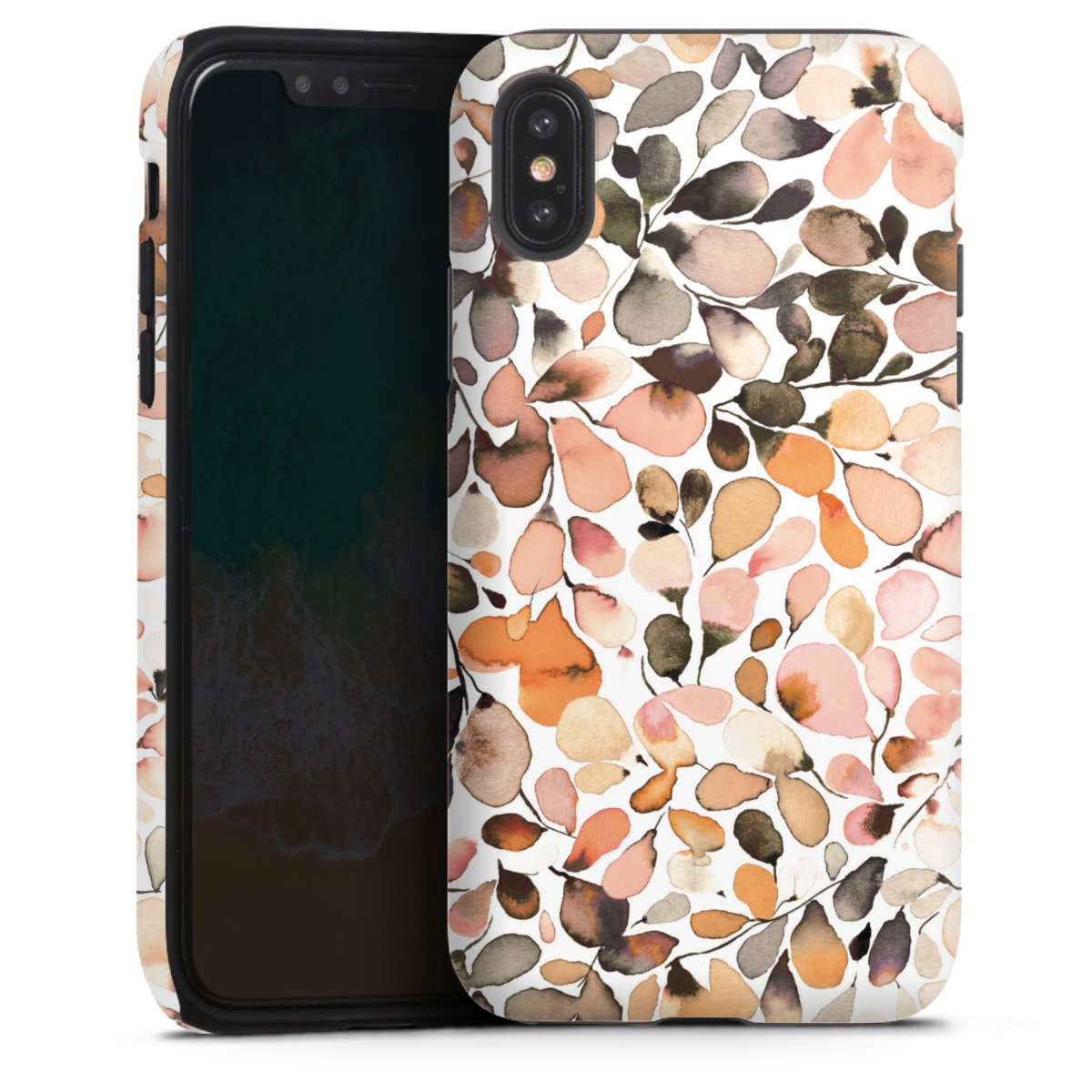 Eucalyptus Watercolor Leaves Dark Brown Autumn