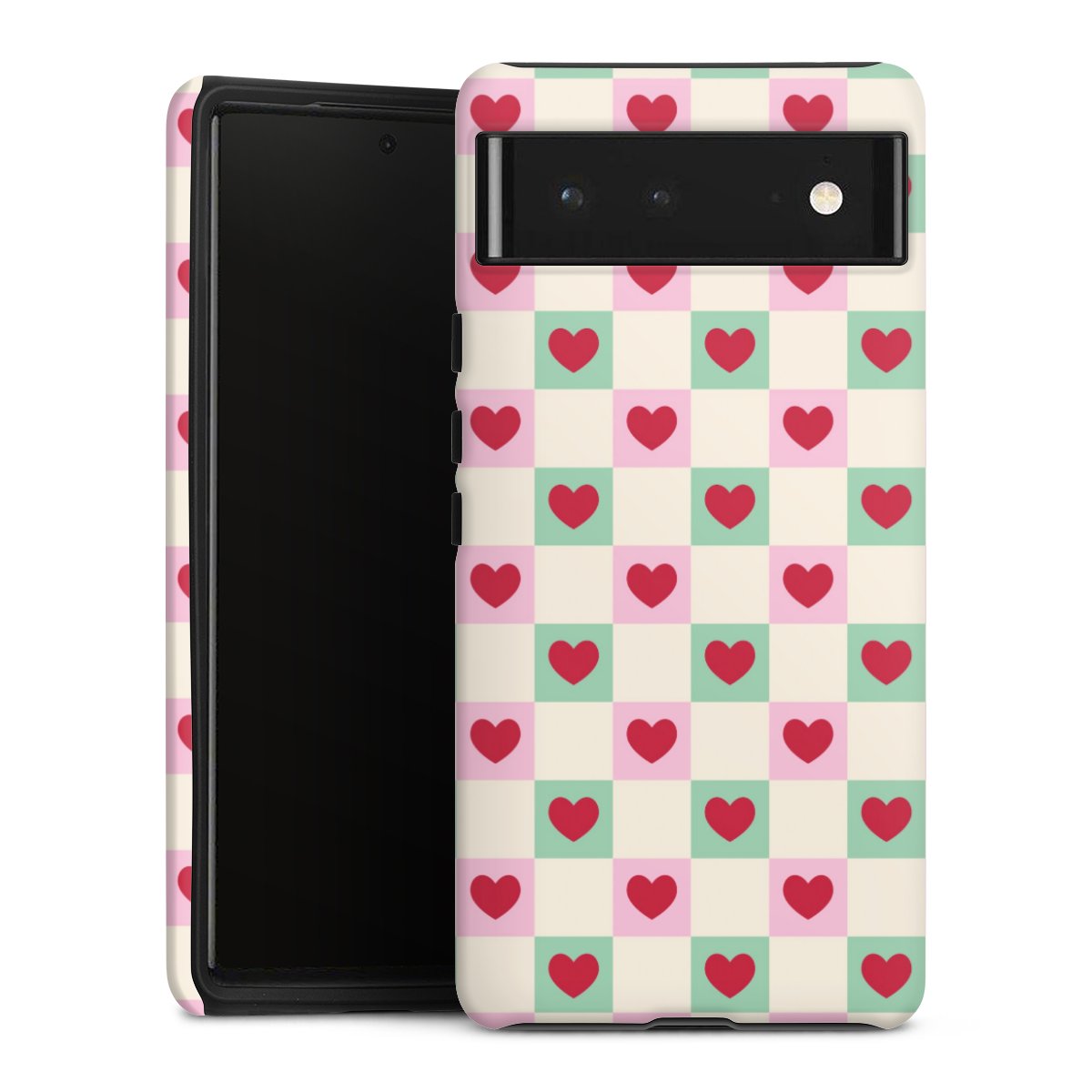 Valentine Checked Hearts Pattern Pink Green